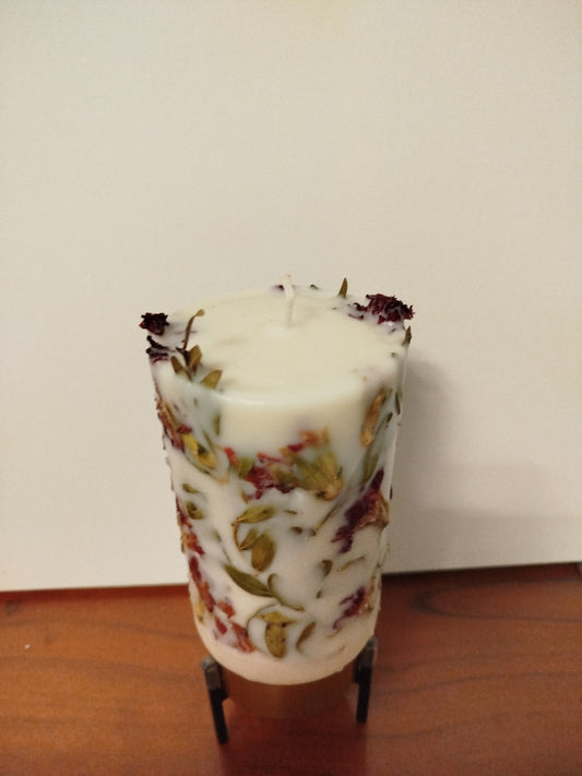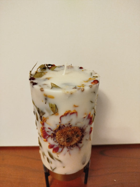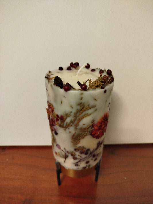 Handgemachte Botanische Kerze. Einzigartiges Unikat mit selbstgepflückten Blumen