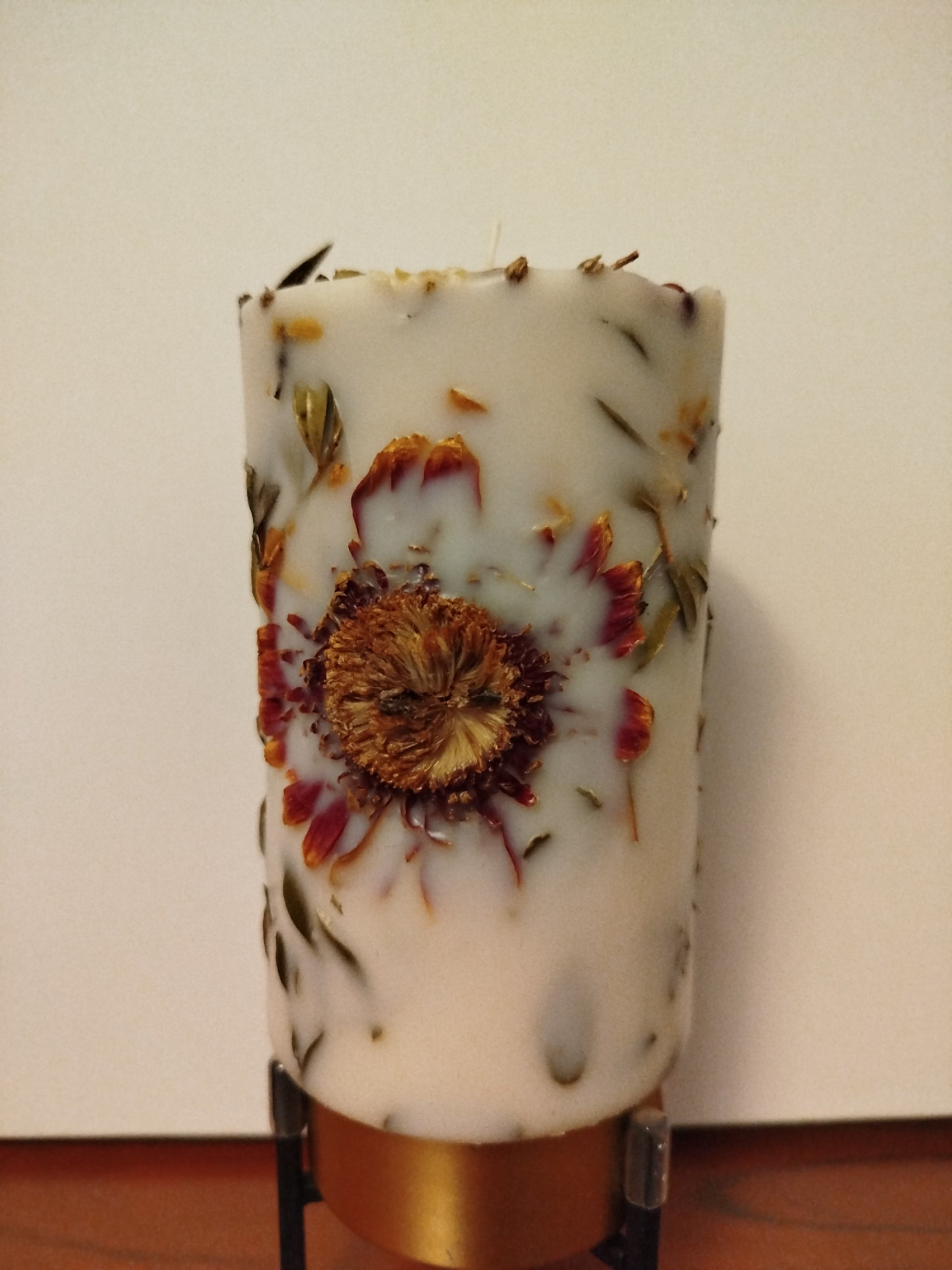 Handgemachte Botanische Kerze. Einzigartiges Unikat mit selbstgepflückten Blumen